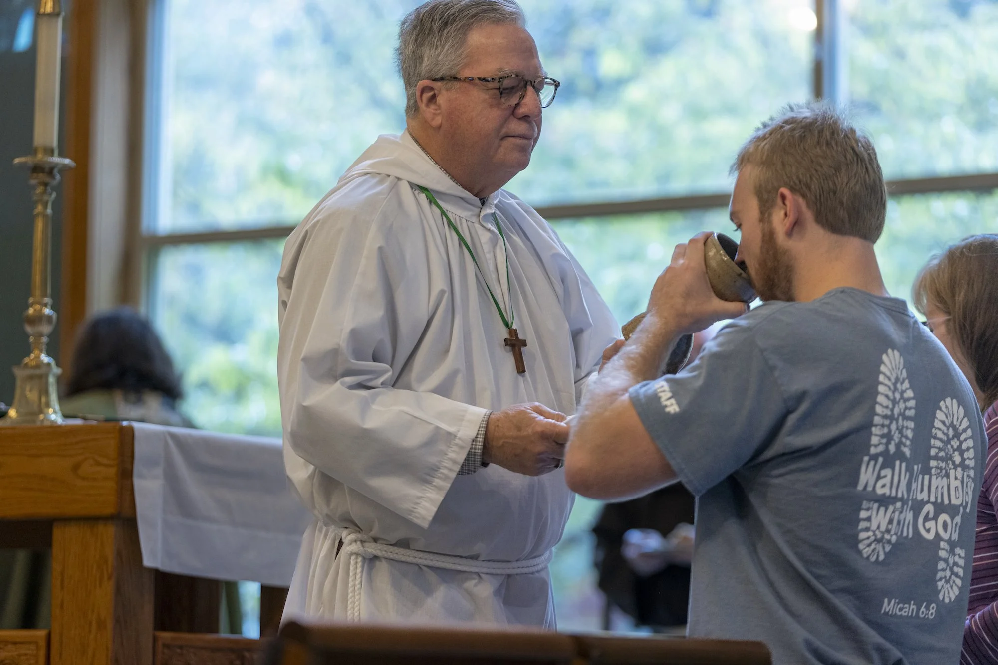Everyone is welcome to receive Communion, no matter your faith background or age. It’s such an important part of how we encounter God that we share in Holy Communion, or the Eucharist, each and every Sunday. We use homemade bread and red wine at our church. If you don’t want to receive, but would like to join the rest of the congregation at the altar rail when it is time to take Communion, simply cross your arms over your chest, and the communion minister will offer a prayer of blessing. Gluten-free wafers are available; simply let the clergy know at the railing.