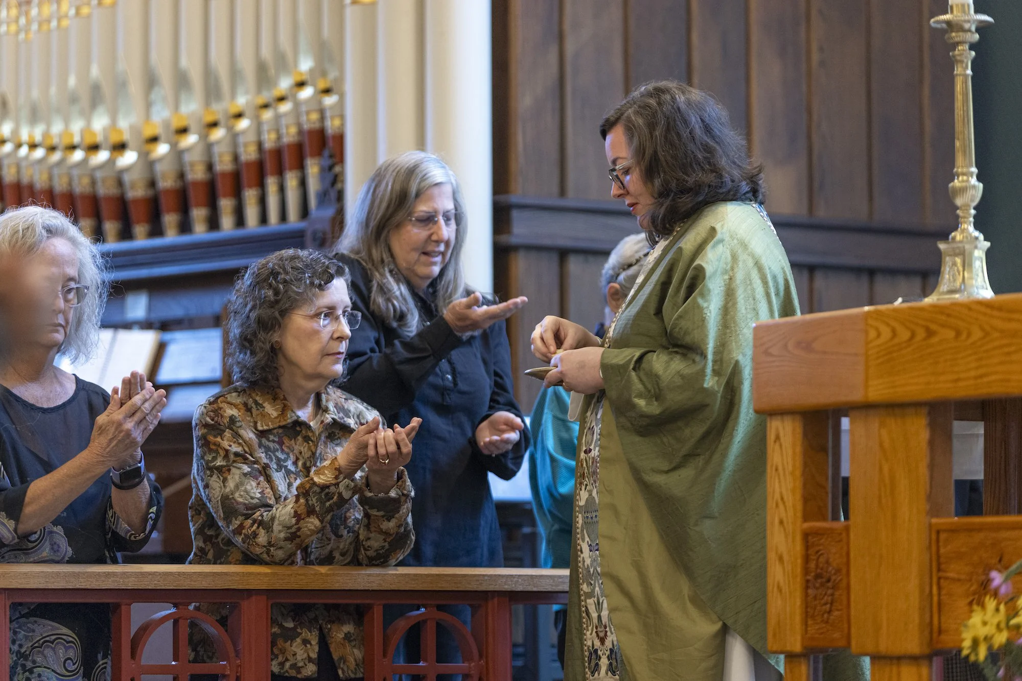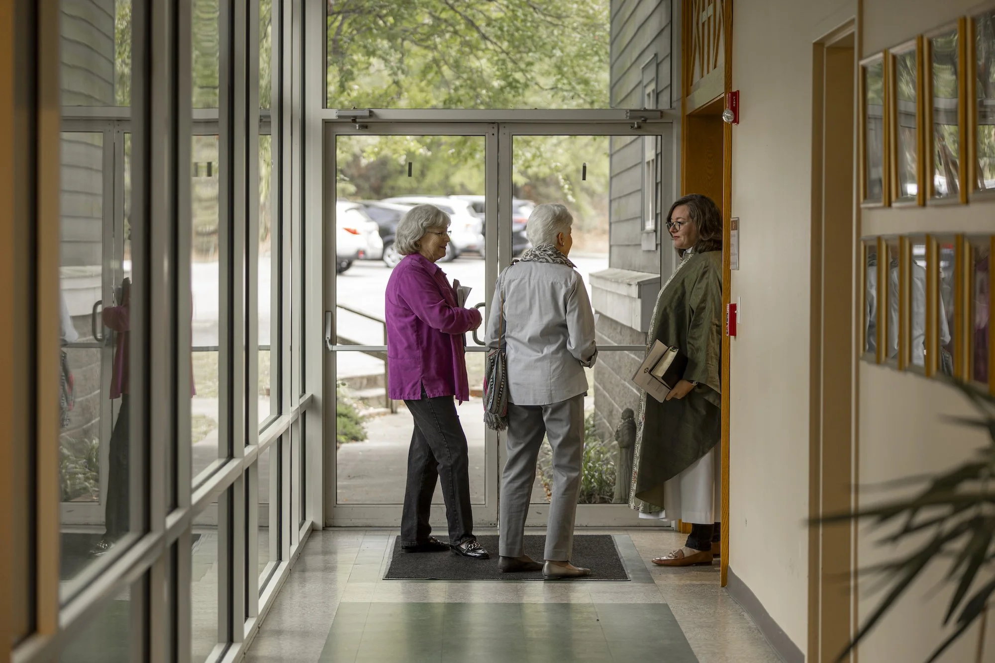 Following the service, the priest greets people at the rear of the church. In addition, the community gathers for brunch and conversation outside on the patio or in the Gathering Place, located next to the worship space. All guests are welcome to join us; it is a great opportunity to get to know others!